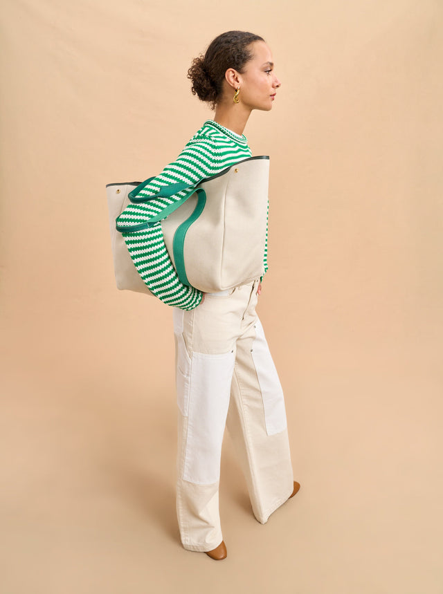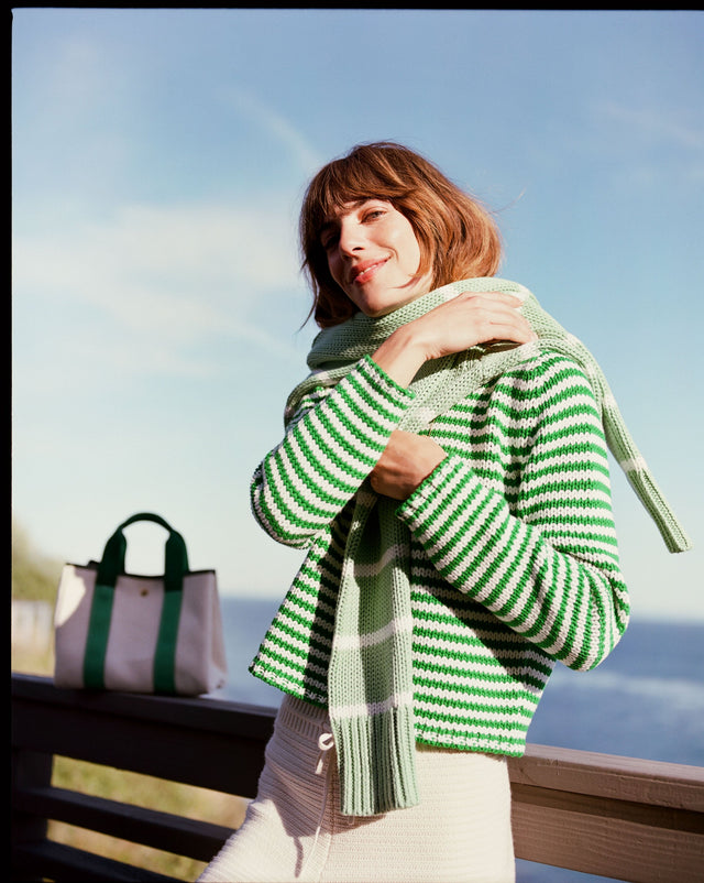 La capsule la plus vivifiante du moment mets à l’honneur le Kelly green, avec la marque new-yorkaise La Ligne. La Ligne est une marque inclusive, féminine et hautement inspirante, fondée par 2 anciennes rédactrices du Vogue et une ex de Rag & Bone. Avec elles, nous avons co-créé une gamme de pulls marins et de sacs.La capsule dévoile une identité littorale nonchalante à mi-chemin entre l‘esprit des Hamptons et celui de la Californie. Sur ce désir de vert vif et vibrant, les sacs réalisés sont complémentaires, un petit et un grand format. Ils sont les indispensables rêvés des weekends à la plage hors de la ferveur de la ville.